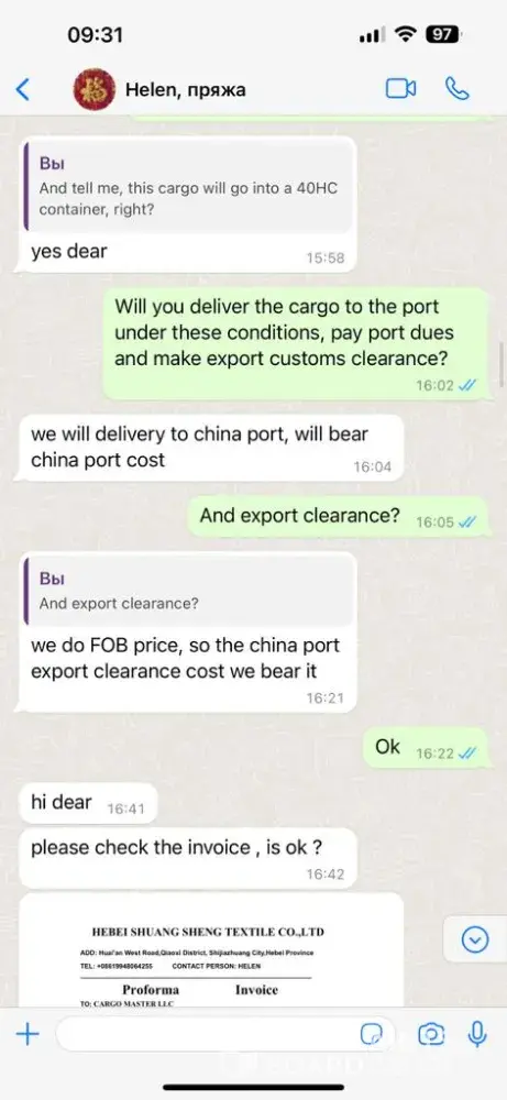 A scammer is trading on your site. a year ago, it was this person who negotiated with us on behalf of another company and stole money from us. On July 19, 2022, an international contract was concluded for the supply of goods - recycled yarn with Hebei Shuangsheng Textile Co., Ltd, whose director is Wei Wei Zhang, in the amount of RMB 246,291 On July 28...