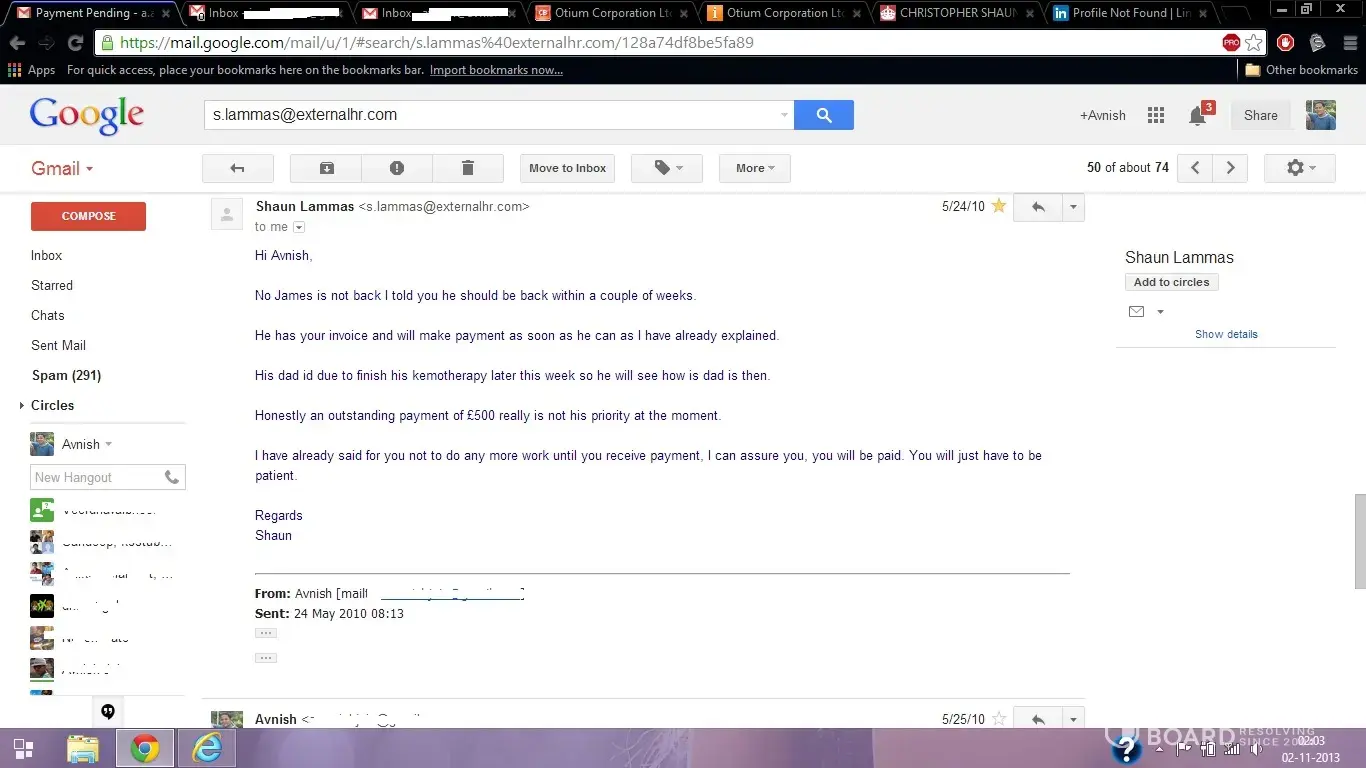The guy who started this thread. Avnish is a guy who was in India, he touted himself to me (as an employee of ExternalHR Ltd) as being a resource he said that he had access to jobsites and linkedin and that he could find us candidates who were interested in our vacant positions. The Director of ExternalHR via myself agreed to engage the services of Avnish Jain to find a number of candidates who he would contact, confirm their interest and get their for a set fee per month. Avnish vanished for a coupled of weeks and said that he had been ill. He then simply copied and paste a few profiles from LinkedIn and sent them across to us. None of the candidates had been contacted or had any knowledge of Avnish and therefore he was not paid and the supplier contract cancelled.