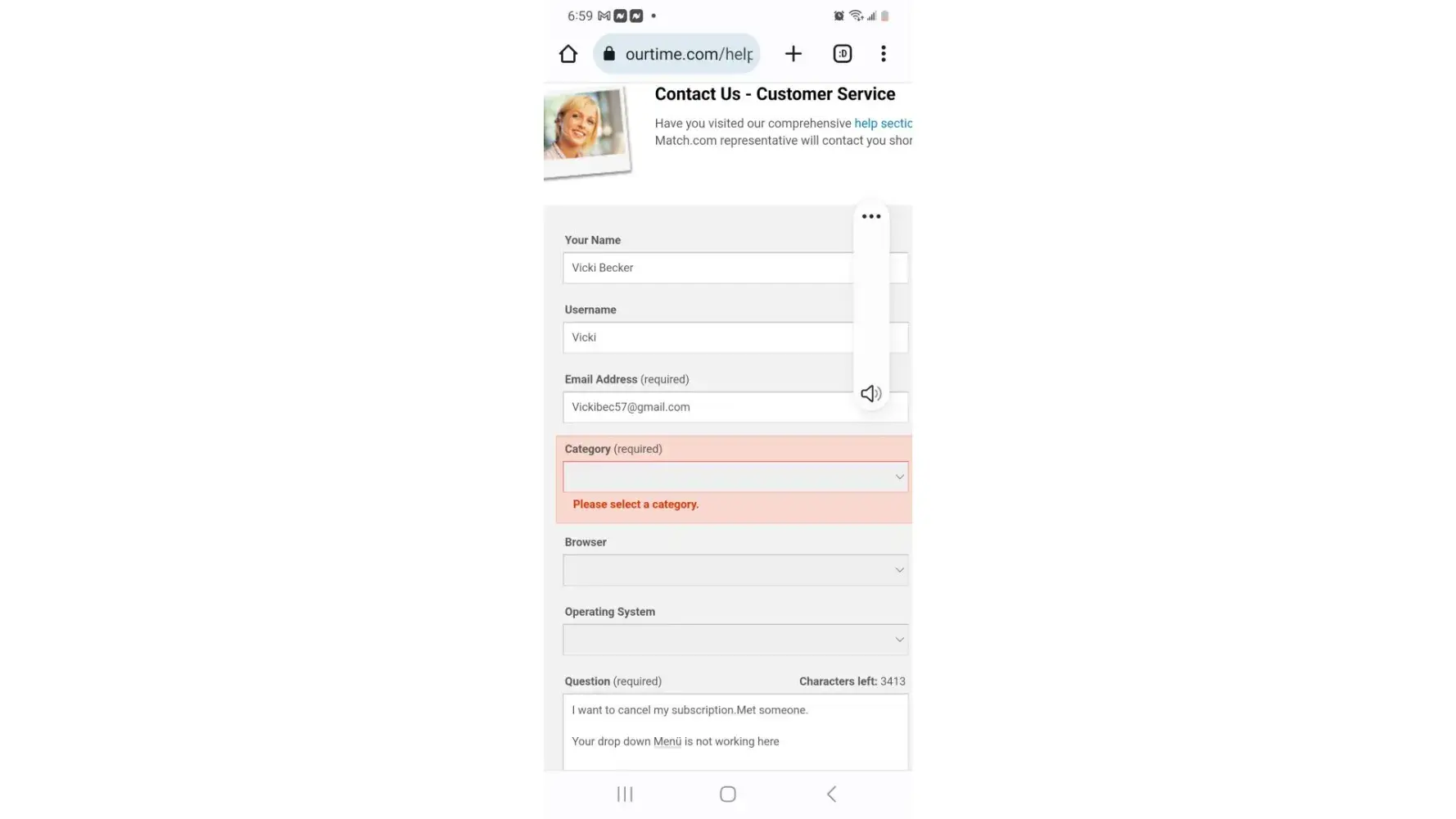 The site has a pop up for $1.00 a month which is a scam. My credit card was charged 81.93 cents when I only agreed for 6 months at $1/monthly. When I called ourtime.com, they told me that it was my error and that they do not have a refund policy. I am now working with my credit card company to et credit and report the scam.