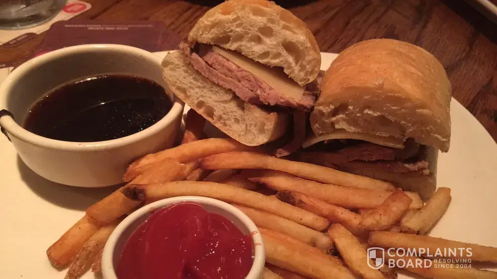 Finally, he said he could just cut a slice of prime rib but that he would have to charge me the price of a regular full price hamburger instead of the happy hour prime rib sandwich. I really did not want to go hungry, so I agreed. It came back and was ok tasting, way overdone meat with onions that were dark brown and slimy. It seems really bad that you can go to one Outback, get used to a certain way they fix it and go to another one and they fix it completely differently. You would think they'd all be equal. I was horrified that the price of my sandwich was double what it usually was. From now on I will stick to my regular Outback restaurant and avoid this chain and others at all costs! Disgusting! I would appreciate receiving a response and maybe a discounted sandwich next time I go to Outback. Included is a pic of how they usually are done at Eastgate Bellevue, WA Outback.