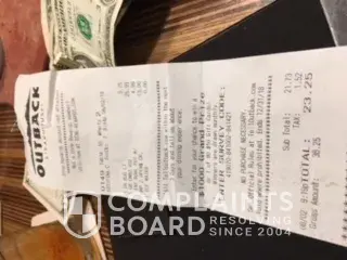 Last night my husband and I went to eat at Commerce, GA Outback . We had not been there in over a year due to the service and food so we thought we'd give them another try . I ordered potato soup and he ordered the GB combo. The waitress told him to try it and if he didn't like it, that she would bring him something else. When we received our food, the lobster tail stuffed shrimp was very runny and the salmon patty was like mush. The cook proceeded to tell us that that not how the products should be cooked but offered no other options to order anything else. We had also asked for bread but our waitress was to busy with the guy at the bar and the table of 4 men above our table. I ran out of tea and never received anymore until I had completed my soup . This food he ordered was 25.99 and they did comp half of it but I don't feel this was enough whenever the cook stated it wasn't properly cooked and you get bad service plus the fact you leave hungry because you couldn't eat what you had .