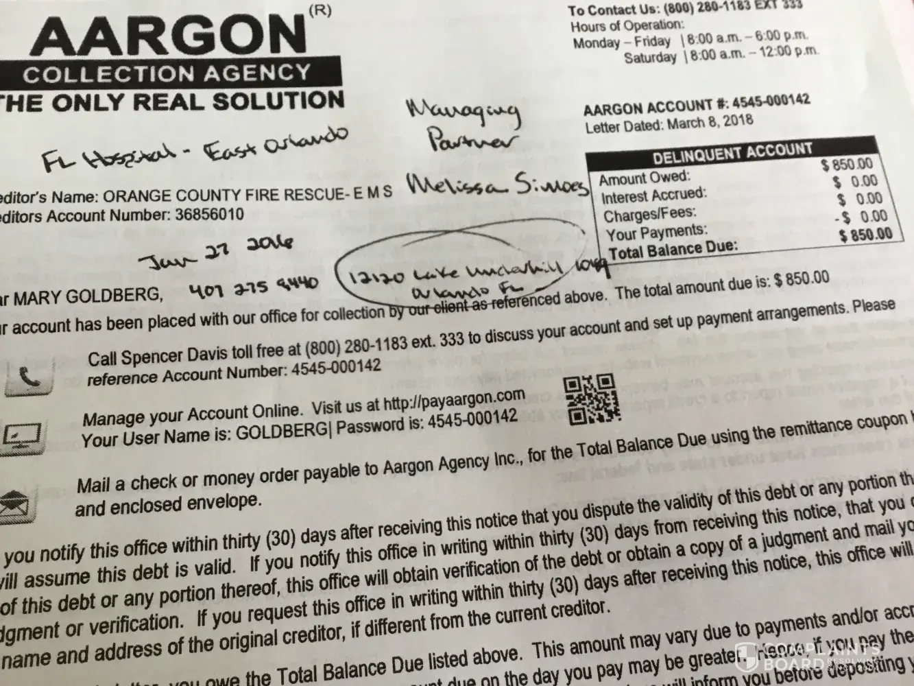 On January 27, 2016 I was eating at your restaurant at 12120 Lake Underhill - 1049 Orlando, FL - managing partner Melissa Simone's, when I contracted food poisoning. I became violently ill and was in the rear of the restaurant . The manager on duty called for EMS. At no point did I ask for assistance from anyone. Except to please ask my husband, Michael Goldberg, to come back and help me. When EMS arrived I was coherent and stable. Instead of allowing me to simply leave out the back door with my husband, they forced me against my will to get into the ambulance and go to the hospital. Three months later, I started receiving bills for the experience. I finally resolved the issue with the hospital and doctor. However, this bill with the EMS was evidentially not resolved as I thought it had been the last time I spoke with someone at Orange County Fire and Rescue. Therefore, my issue is that since I NEVER asked for the ambulance and voiced my desire to NOT be transported to the hospital; I do not feel obligated to pay for the EMS. In my opinion, since your General Manager made the 911 call against my wishes, you all should bear the responsibility for this bill.