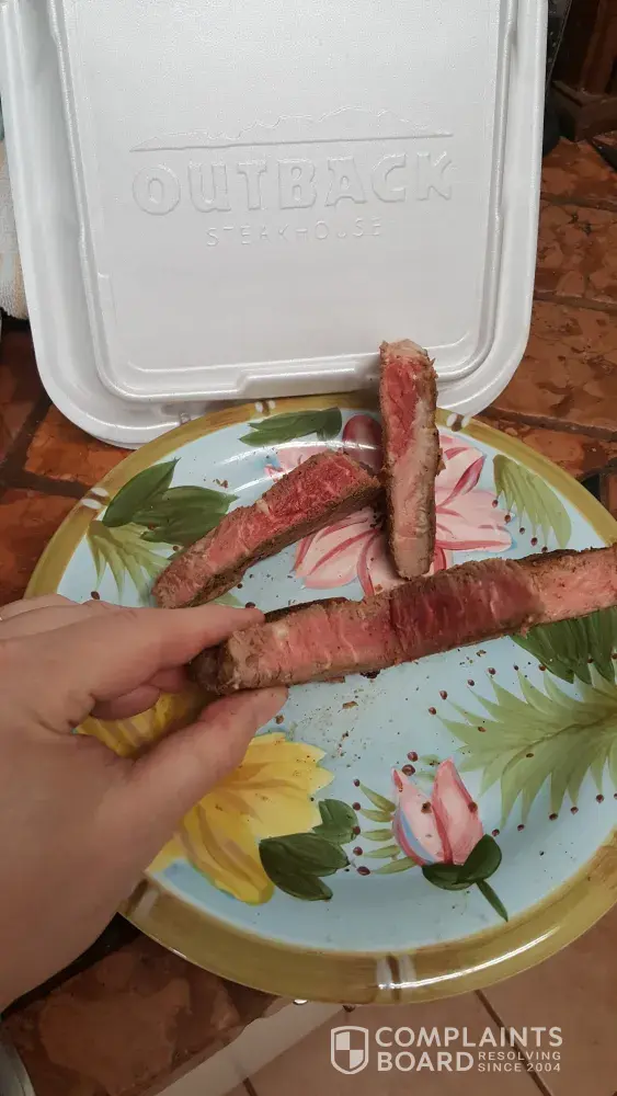 Went to the old bridge nj location and the reference # is [protected]. The steak quesadilla appetizer was low on steak and a few pieces you couldnt even chew bc of how tough they were. We talked to the server and she said sorry but that was it. Then we asked to speak with a manager and they kindly removed it from the bill. I requested a burger medium rare and it had no pink to it at all. Btw, your burgers are usually fantastic and i get them most times. My mom got the ribs and i planned on trying them but when they came out they didnt look appealing. She ordered the full rack and it was 6 ribs but that didnt matter bc she only had 2. You should be able to pull ribs apart and she had to use a knife. The last few times I've gone to the outback I've been disappointed. The cookie skillet should never be removed from the menu. Best dessert ever.