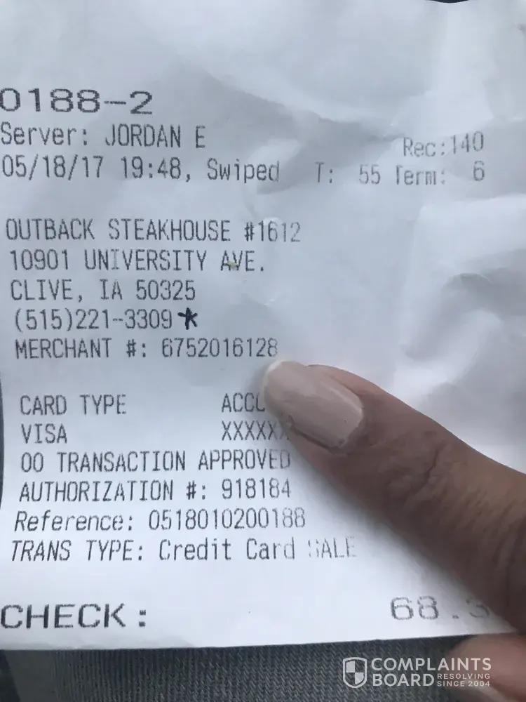 We dined at the Outback in Des Moines, IA located at: 10901 University Ave.; Clive, IA 50325. And we were an impromptu party of 11 that was split between two tables; with 2 separate servers. My bill was under merchant # [protected] - Before arriving, I attempted to do call ahead seating. I called twice & was hung up on twice. One server was great & the other was terrible. He was condescending, rude, & continually forgot things. Food came out at completely random times. All the outback "usuals" were neglected such as the bread & drink refills. We had to ask them to get someone to get our drink & appetizer order after we'd been sitting for like 10 minutes. Like I said - it was treated as two separate tables. Meaning each server had a table of 5 or 6. I can't understand why this seemed to be such a hard task for them? It's so unfortunate bc outback is a favorite. At the end of the meal - it took forever to get our checks & they attempted 3 times to split them unsuccessfully - and at the end - they just split them by table. It was a terrible dining experience which was unfortunate bc we were celebrating a win at the Iowa state track meet. No compensation or discount was offered on our bill - which is crazy given the amount of apologies offered throughout the entire meal. I'm disappointed with this experience & feel that customers deserve a much better dining experience.