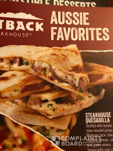 Outback Steakhouse earns a 1.1-star rating from 1 reviews and 491 complaints, showing that the majority of diners are dissatisfied with their meals.