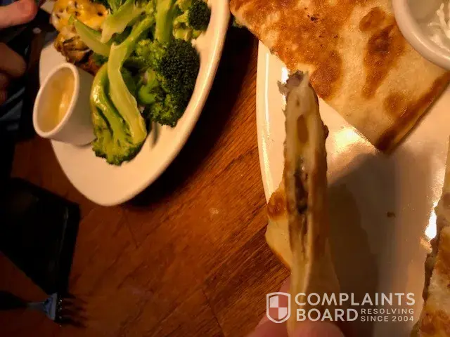 Ordered the steak quesadilla. They had a advertisement on the table and it looked good in the photo. It not cheep but looked good so I got it. What a mistake, look at photos. It was about 1/8 inch thick and when I opened it shaved slivers of meat inside. A total waste of money and looks nothing like the photo.