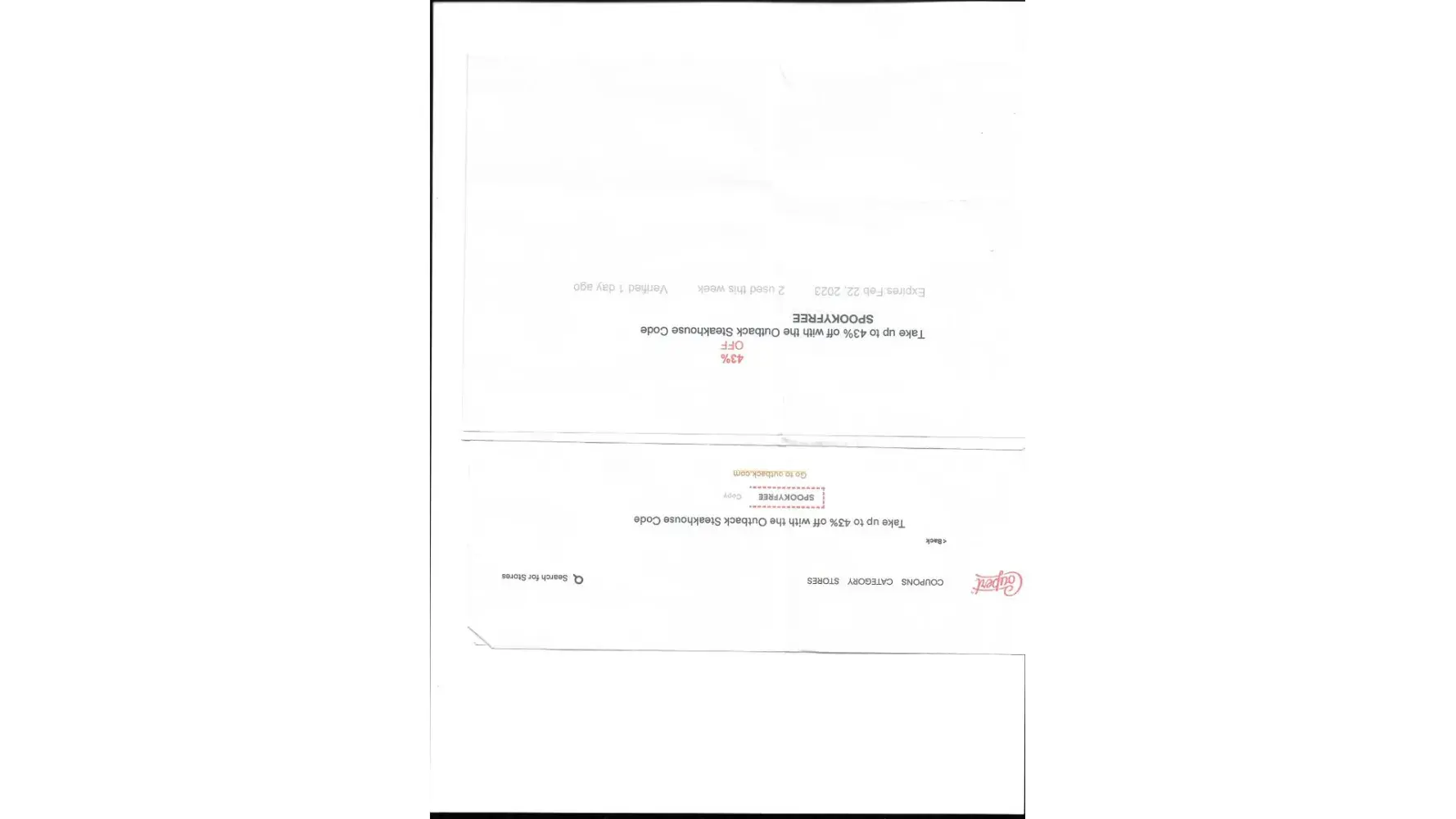 Take up to 43% off worth the Outback Steakhhouse using Code "SPOOKYFREE"