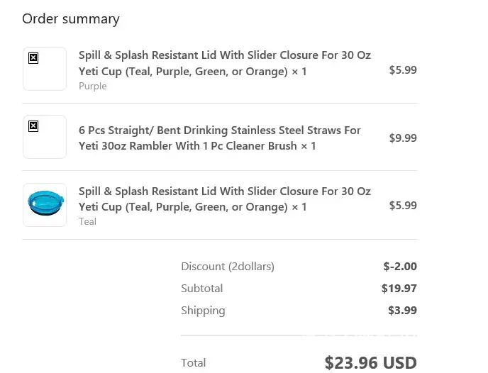 This is the second time I have placed an order with this company. The first order came in a timely manner, in which I had placed the first order around the holidays so it took a little time to receive the order but I still received my products. So I placed another order back in January 2017 and it is now July 2017. No cups. No straws. No spill-proof lid. Nothing. Nada. I got screwed out of a good 50 bucks. Thanks to this POS site. Oh and the black matte 'powder coated' rambler that I had purchased from my first order is all chipped to hell. My husband would rather have the $7.49 cheap knockoff from Wal-Mart that does NOT chip... Thanks for nothing POS company.