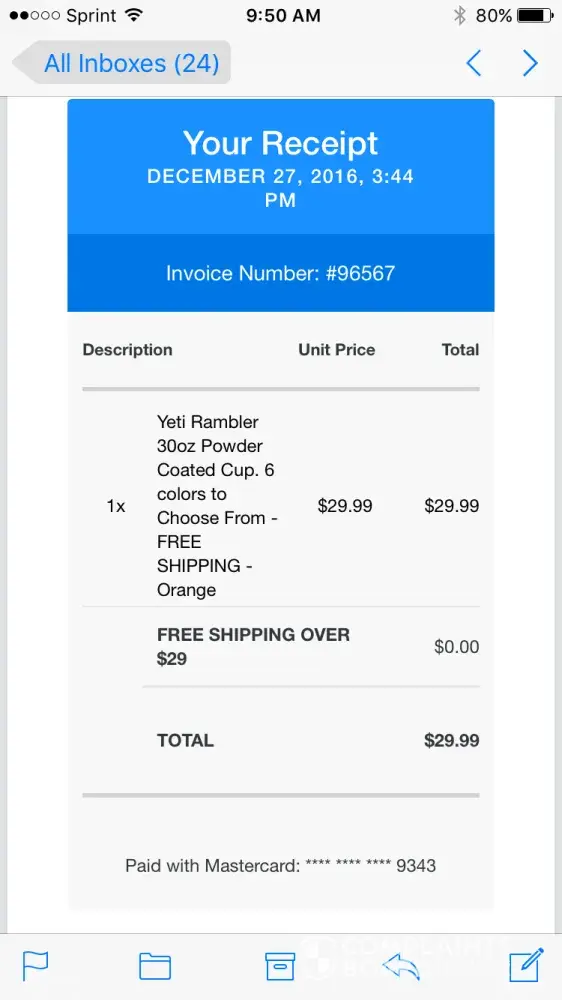 Like everyone else I ordered a yeti cup and never received it. Customer service assures me it's coming. I asked for a refund and was told they cannot refund my money until I get the order and send it back, because it's in line for shipping. Will be disputing the charge with my bank. Do not order from this company! They will take your money!