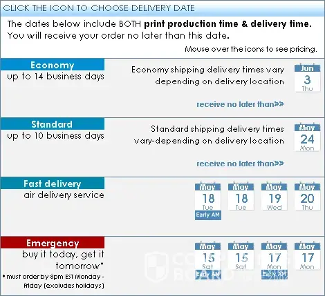 Since you post on February 2010, Overnight Prints has taken steps to simplify our shipping process and to make delivery times more visible to customers sooner on our website (each product page). Instead of selecting a printing type you actually chose the date you need your order but. We have also implemented a new Emergency shipping method. You can now buy your order today and get it tomorrow as long as your payment is received by 5pm PST.