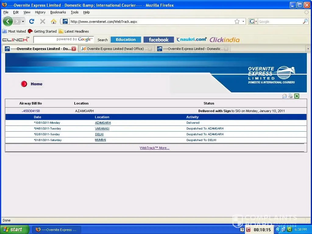 As per overnite ltd. AWB No. [protected] received at azamgarh on 10.01.2011 and mentioned COURIER GOT DELIVER with sign but till date on 02.02.2011 courier in overnite azamgarh office. the whole tracking software is fraud they have mentioned without delivery.