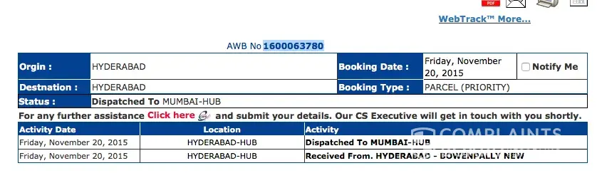I sent a Apple Mac mini with AWB #[protected] with booking date 20th Nov 2015 with priority delivery to the Kolhapur, Maharastra from Hyderabad. As of today courier not delivered and don’t know the status of my courier .Can someone please respond with high priority.