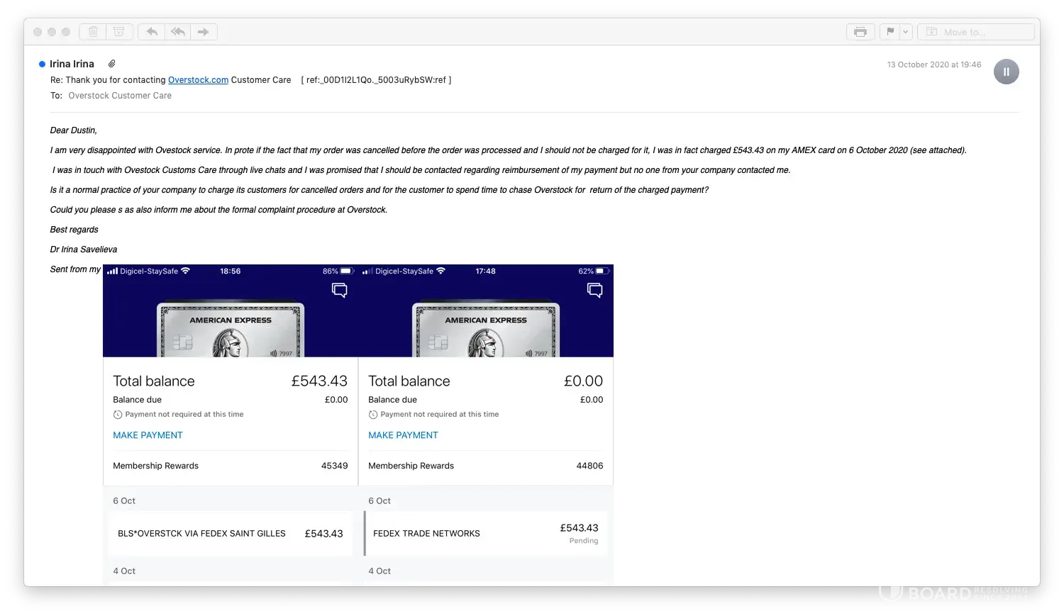 Overstock lack of response & professional service