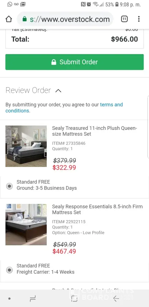 Overstock.com Cancel item (queen mattress)