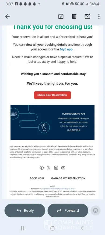My friend went his personal phone app my 6 and paid for a room which was partner with oyo bookings. Upon arrival and after payment through app was told no reservation and used card to pay at site and still no refund for original payment through app. Then when calling sent through multiple contacts they cat find charge and now have to email guesrelations @ G6reservations.com