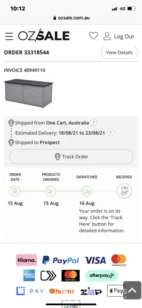 According to Ozsale tracking, my ORDER [protected] INVOICE [protected] was dispatched from Melbourne on 19th of August, estimated delivery 23rd to 28th of August. Today is 17th September. I've made contact via the website and Facebook messenger and have had no response. I have tried calling the phone number for Ozsale I found online with their Head Office address, it doesn't work.