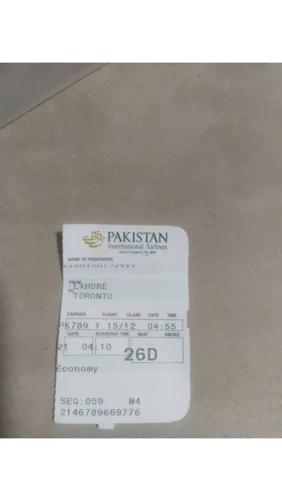 I traveled from Jedda to Lahore 28/12