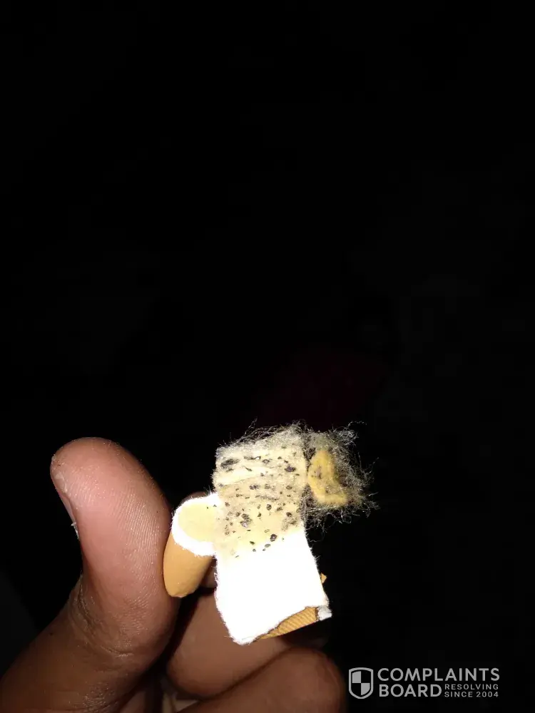 So my mum bought some cigarettes and i had one that was in my pocket and broke so i decided to roll it in rizla. As i pulled the tobacco from the label at the end, tiny black stones fell out and on closer inspection the filter was made with them in. However only half of the filter had them. It was like the half of the filter with stones in them was hidden and they had put half a normal filter in the bunning end so it looked normal. Buy stones i mean very tiny shards of some black stone. The conclusion iv come to thats probably the most reasonable is that the company/person that made these have done it for weight purposes, so the ### seems like it has more tobbaco than it actually has. I have pictures but my camera is not the best. If anyone knows how i can complain let me know.