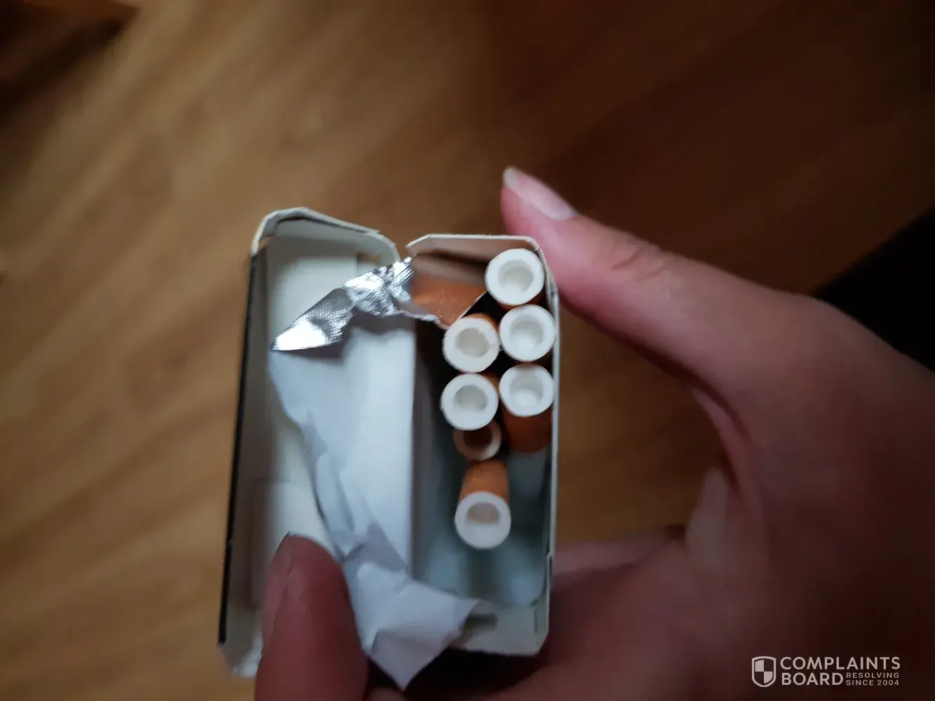 I bought a pack today when I opened it there were 3 cigarettes that had holes and tears in them they are the boxed pack, brought at a local store, This is not the first time this has happened, But I have never had this many with torn paper all in the first row of the pack. At almost $6.00 a pack this is Quality control needs to be more careful in checking the quality of their product. I would like replacement of this product