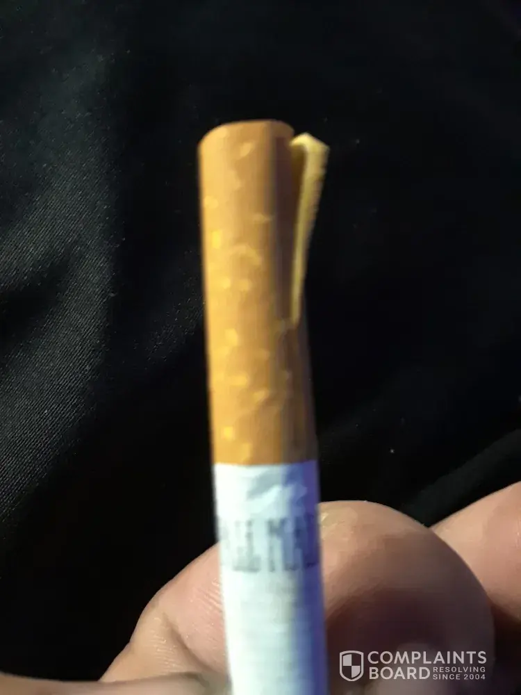 I'm very dissatisfied with Pall Malls lately numerous cigarettes and numerous different packs have been exactly like this not happy I buy Pall Malls all the time I buy 4 packs a day and I think I should be compensated in some way I'd really appreciate if I got some kind of feedback and compensation and I think there needs to be some better quality control and I'm not trying to tell you how to run your business but if you want customers happy and you would like to keep them cigarettes are not cheap to begin with and when you buy a pack of cigarettes and have issues like these gets a little annoying