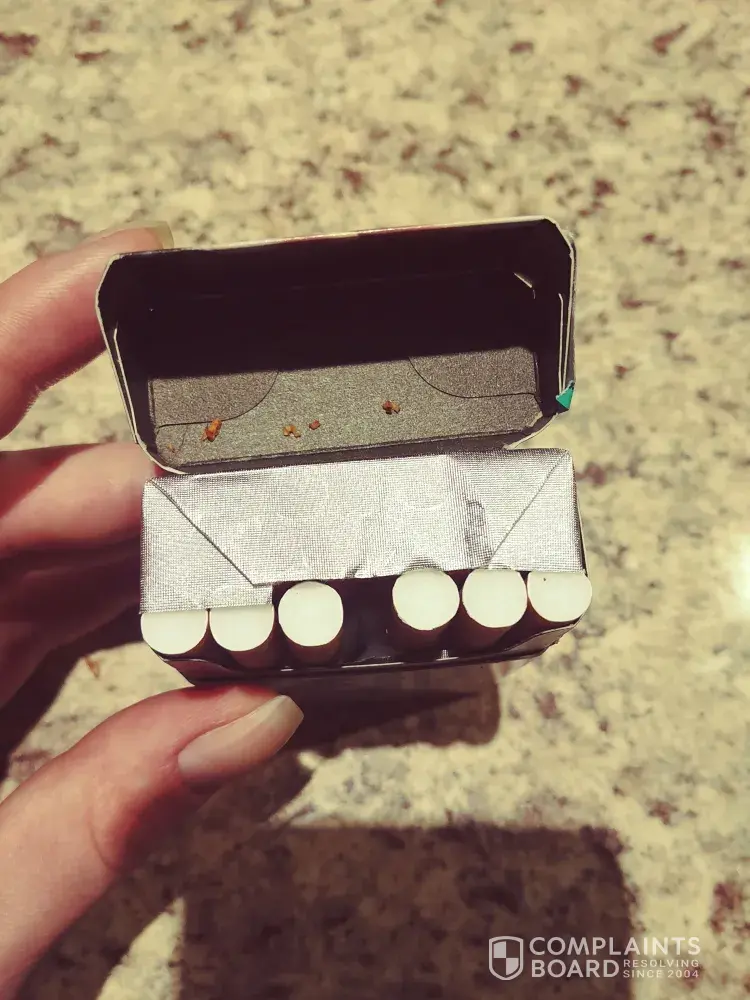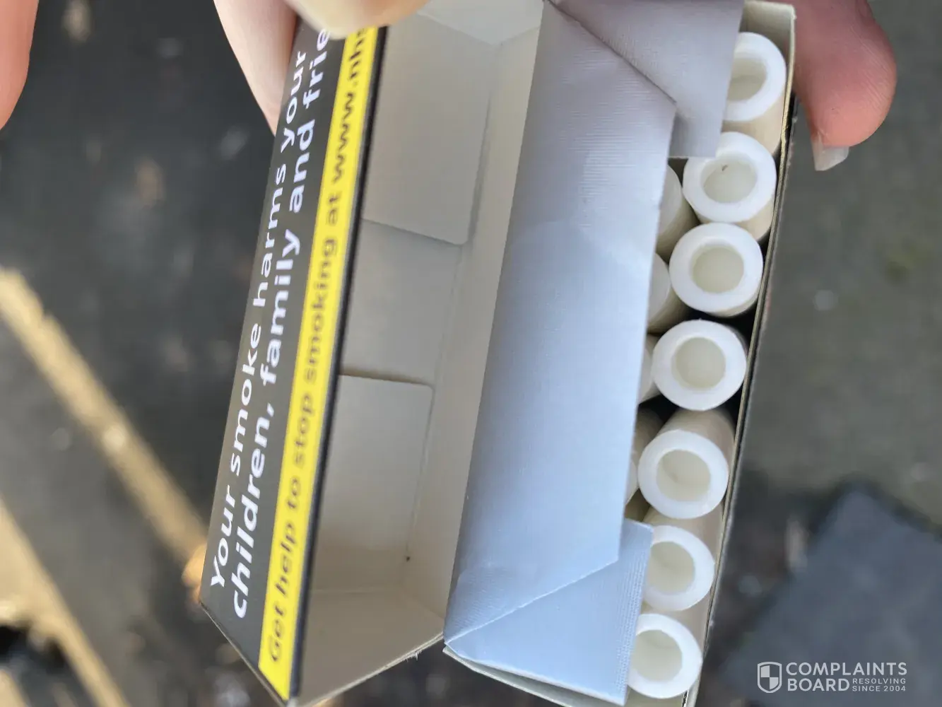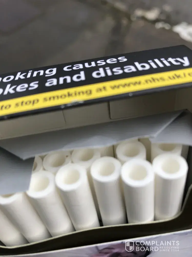 The Cigarettes once I opened a packet of 23 I have noticed that the filters are not complete this is the fifth packet I've had it over the last 3 to 4 weeks just to let you know that your machines or your quality control is not working properly I have photos for proof (there very strong [censored]s ) shops where I bought them from said complain to pall mall