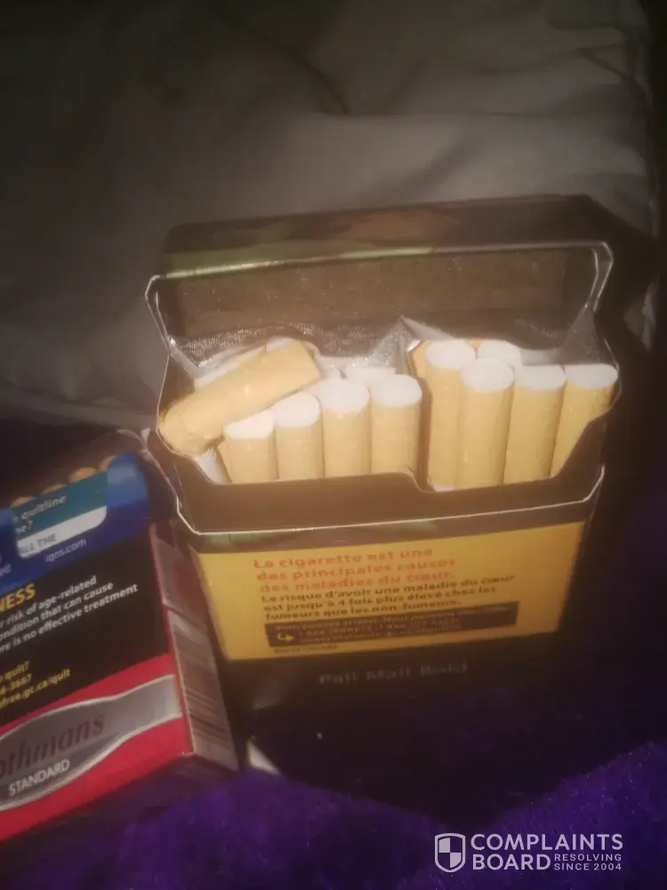 Hi i bought 3 packets of pall mall xl, 1x green 1x purble 1x new orange 1 no lighter, and all 3 boxes were sealed but each box missing 6 ciggarettes each, i bought it a local garage please can you fix this problem asap very dissapointed considering paying after hours prices, i dont understand that a sealed box had 6 cigarettes taken out per box, i can understand 1 box not 3