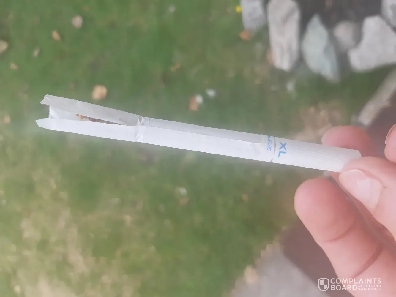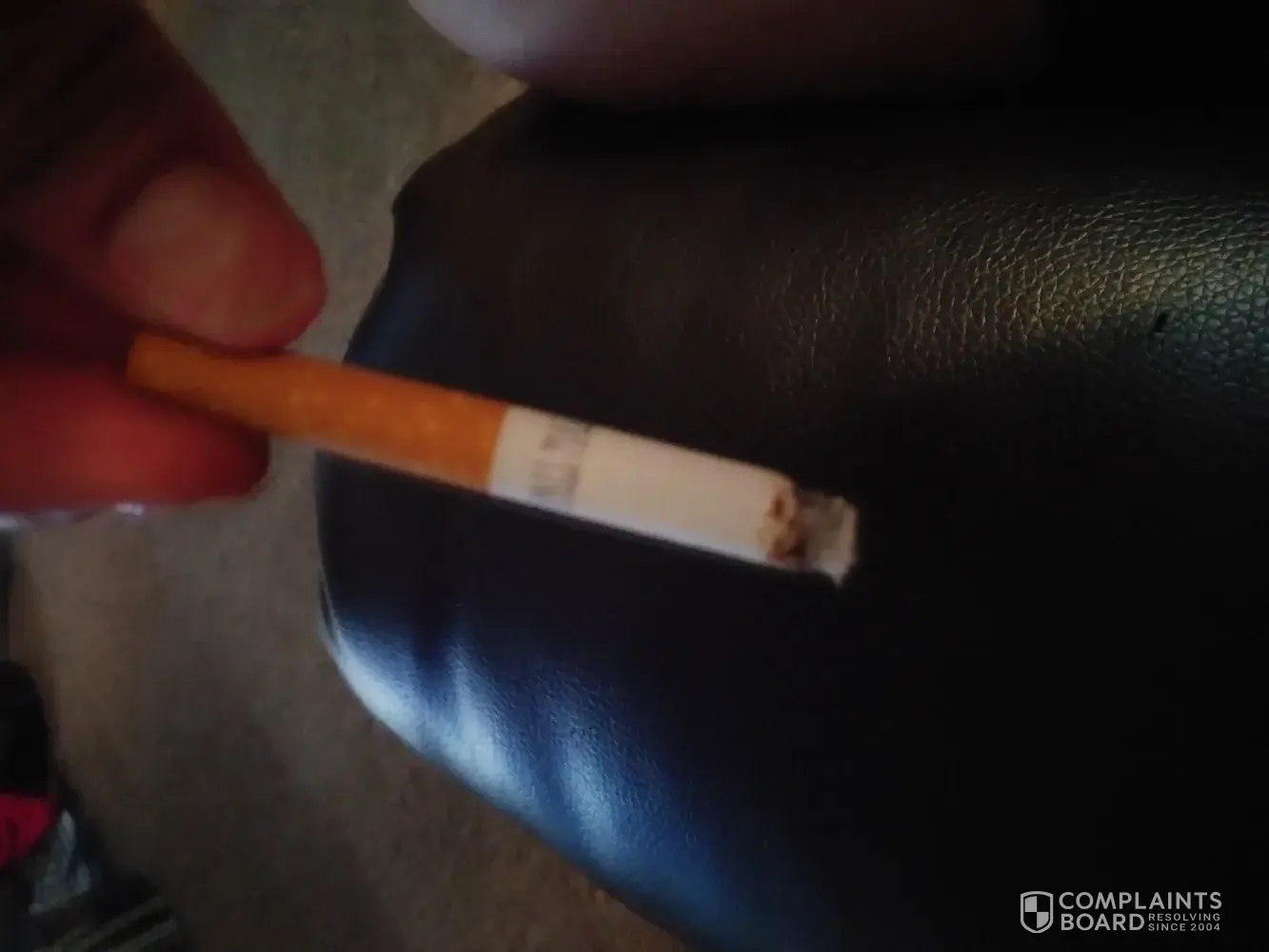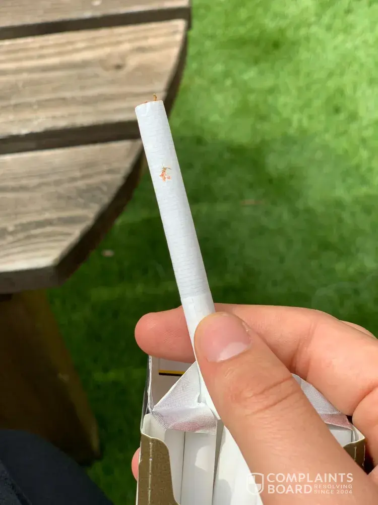 When I came across a cigarette which appears to have blood on the paper. This is not acceptable and I am extremely concerned about what I could of consumed. This could have been from anything such as a human or animal. Please can I have more information regarding this or I'll take this further.