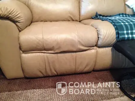 With sitting in a hole with wrinkled leather on the seats when you got up. I again complained to the Furniture Gallery