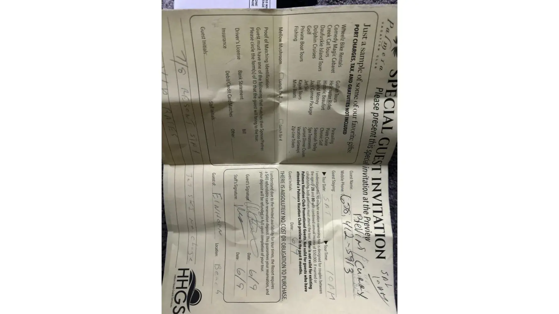 J. took our current timeshare and sold us a timeshare with Palerma Vacation Club. I specifically asked him if the 2 were equivalent> He said, " I am a real estate agent and I could loose my license if it isn't equivalent or better." Completely false. Told me I get 3 weeks vacation a year at the Hilton Head Resorts. Completely false. Assured me 4,000 points would get me what i had in my old timeshare. Completely false. Everything this man said was a total lie. Please please trust me do not believe the lies. When you finally get on the web site which is way after the cancellation period, nothing you were promised will be there! SCAM! SCAM! SCAM!