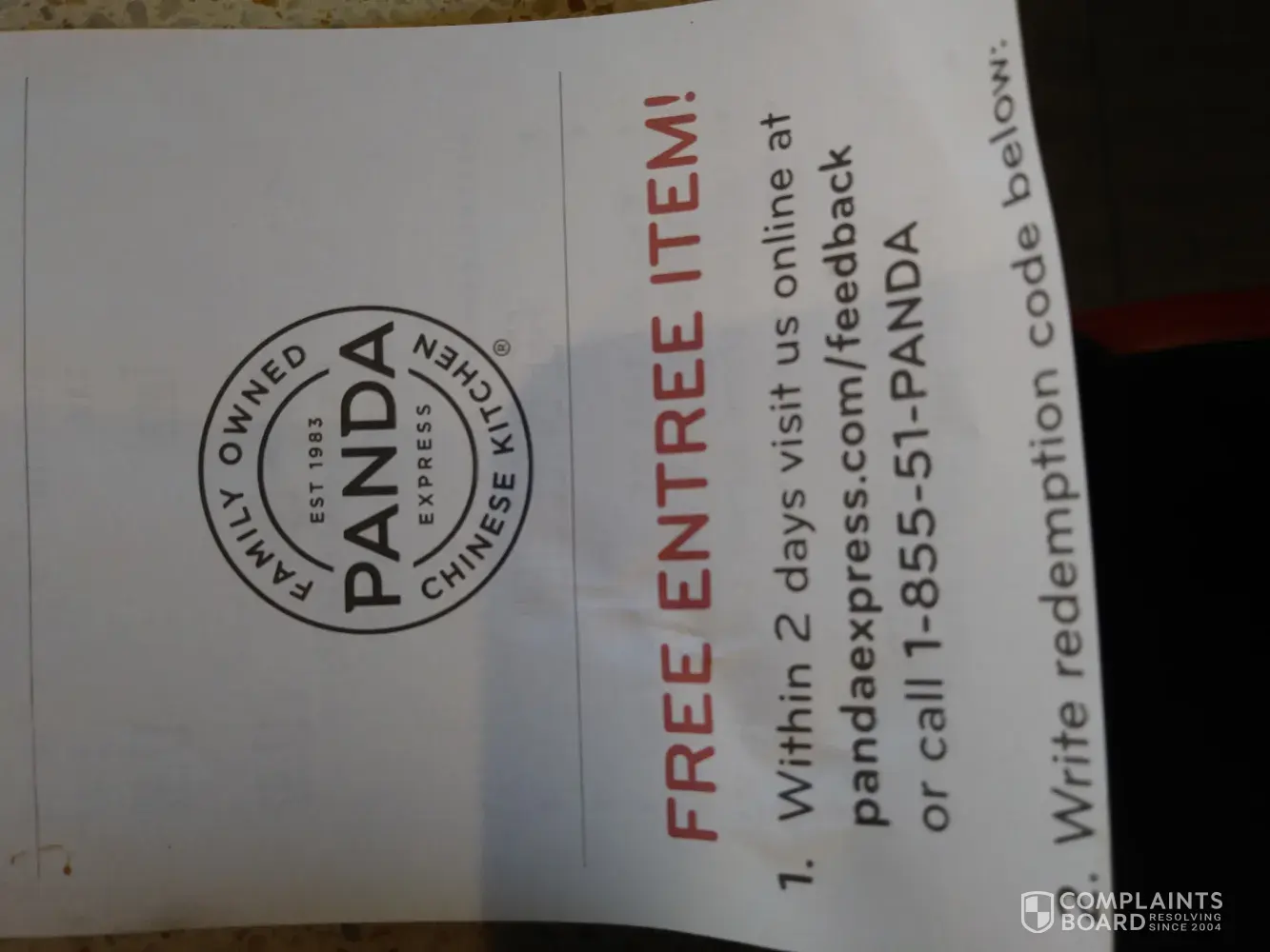 Excuse me? The receipt does not provide this information. The website does not provide this information. When I called... NO ONE ANSWERED THE PHONE in order to provide this information... so they refused to give me my free entree.