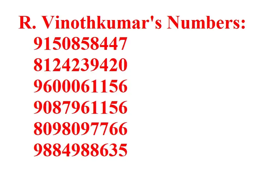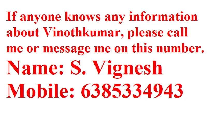If anyone knows any information about Vinothkumar, please call me or message me.