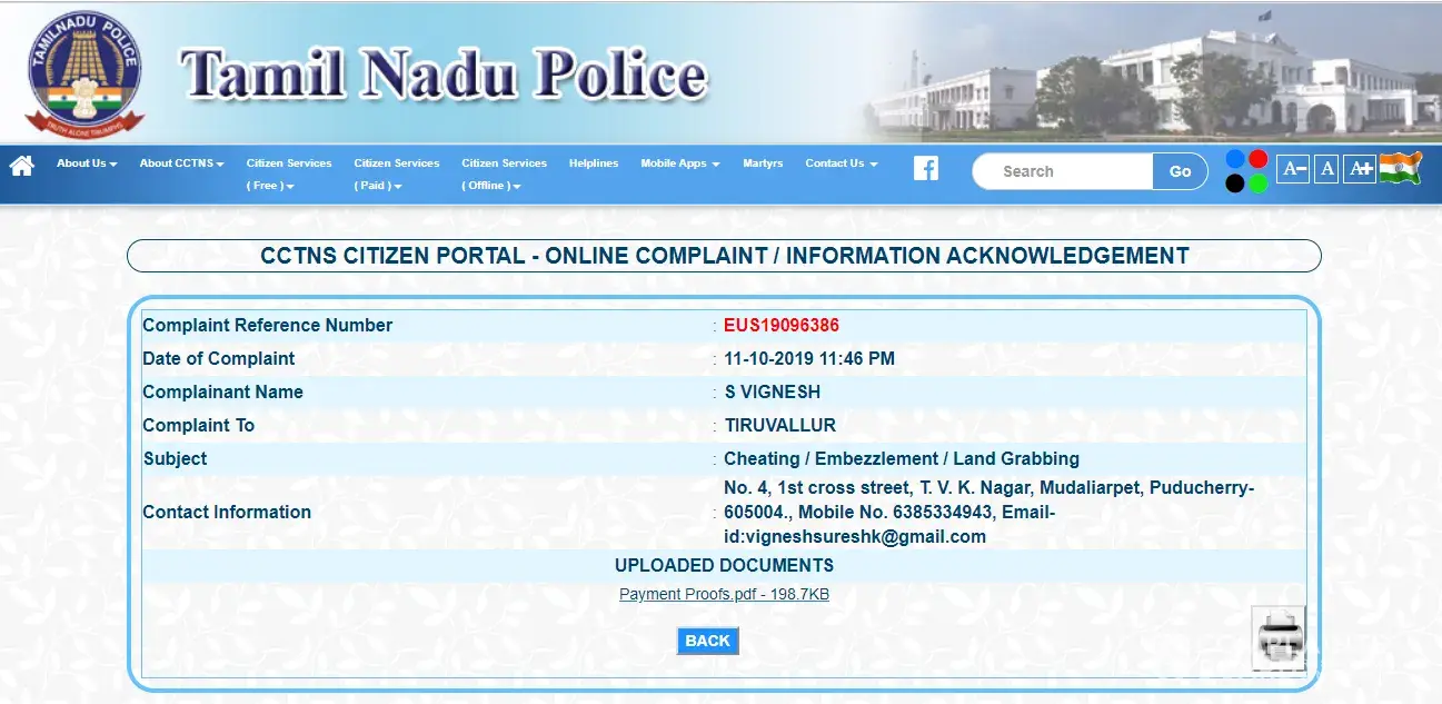 After that, I gave the police complaint in Ambattur police station against Vinothkumar.