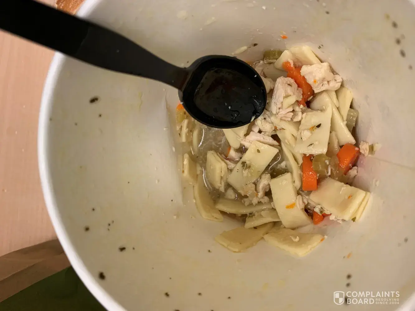 I think if you are going to sell chicken and noodle soup that's what it should be. If you are going to sell broth then that's what it should be. Your chicken and noodle soup is not worth $15.99 because it is nothing but broth. This is so unfair, and I took a picture of the 2 tablespoons of ingredient they gave and the rest of cup was broth. I demand a refund.