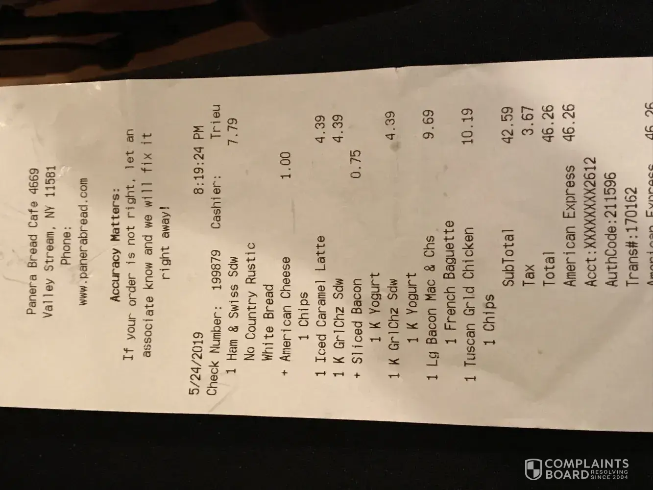 Re: Panera Bread - Cafe #: 601916. Check # 103438