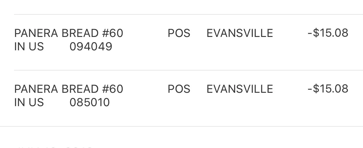 I ordered a meal from the Evansville, Indiana location on June 13th and it charged be for the meal twice and took it out of my bank account! I called and spoke to the manager and she promised me it meant a failed attempt and that it was only pending and the second charge won't go through; however, it did! I want my money back for the second charge!