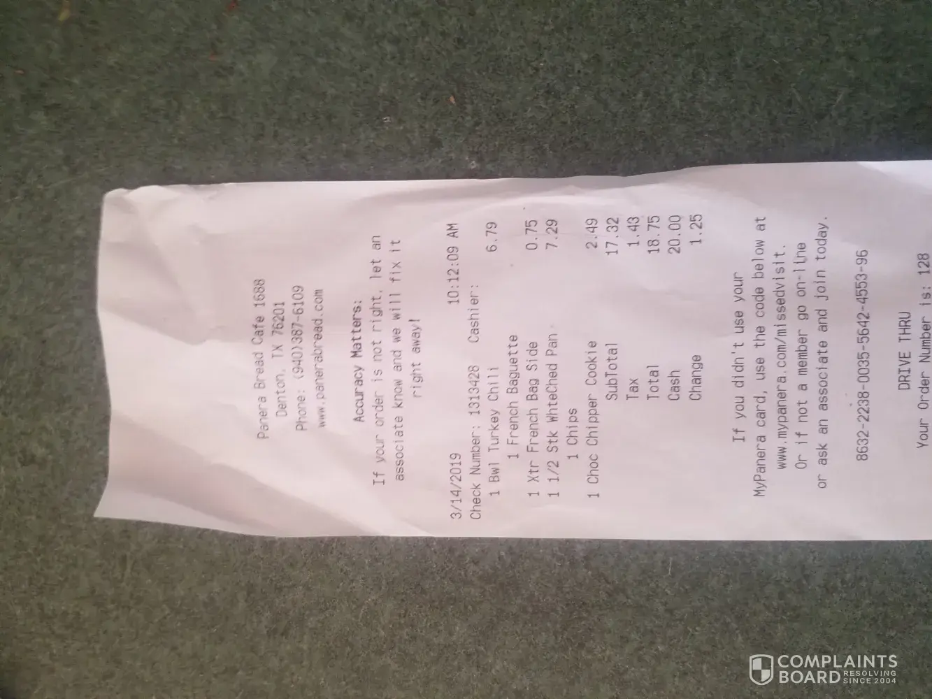 Panera Bread Service on 3-8-2019 at 5:29 pm