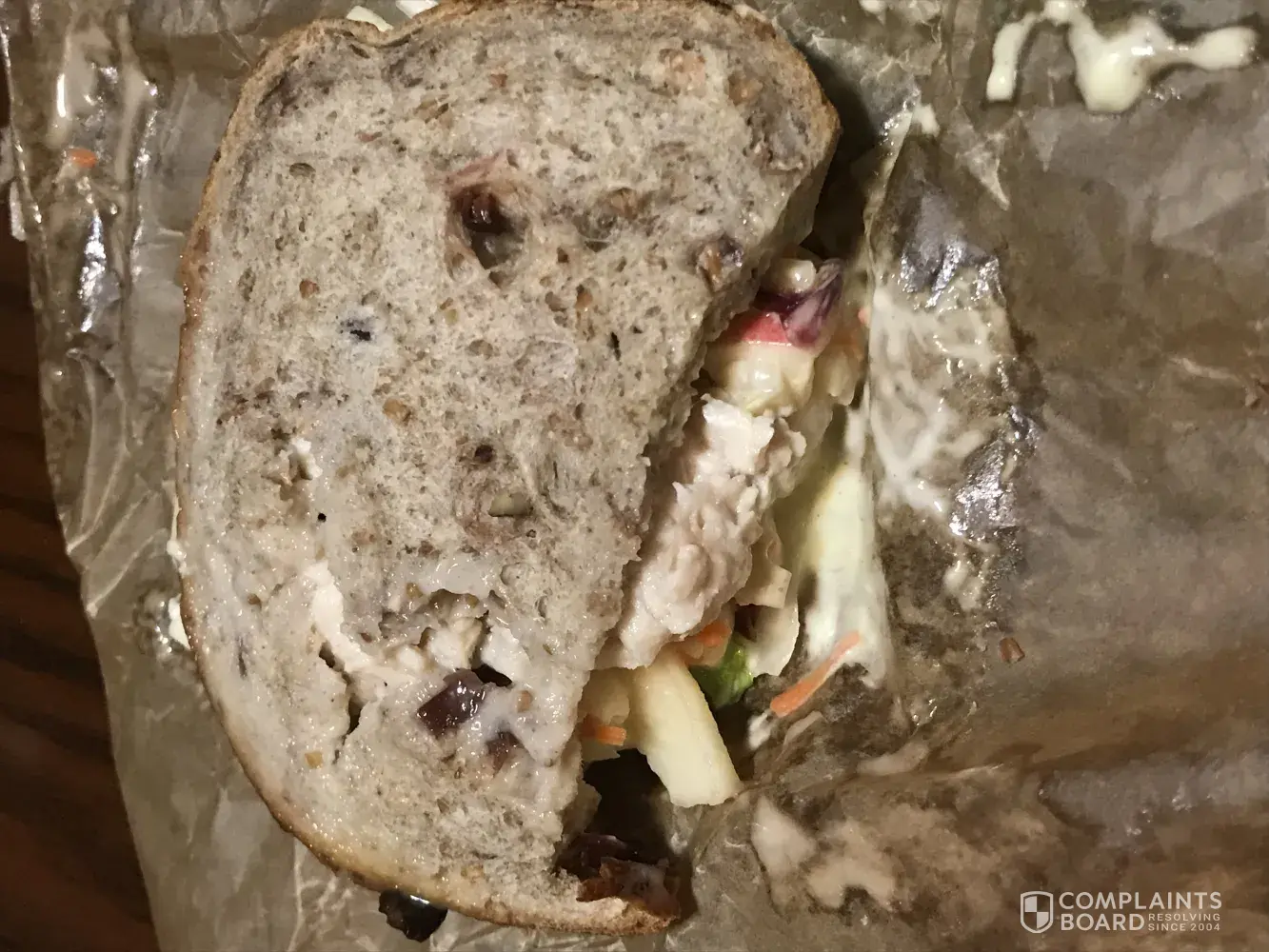 on 10/23/2018, I'm currently 33 weeks pregnant and cannot consumed mercury fish. I ordered the Napa Almond Chicken Salad Sandwich from Panera. They gave me Tuna Salad Sandwich instead. I didn't noticed it until I ate most of it. I thought it was a new recipe until I noticed it was tuna instead of chicken. They are willing to exchange it for me but complained that I ate most of it before returning.