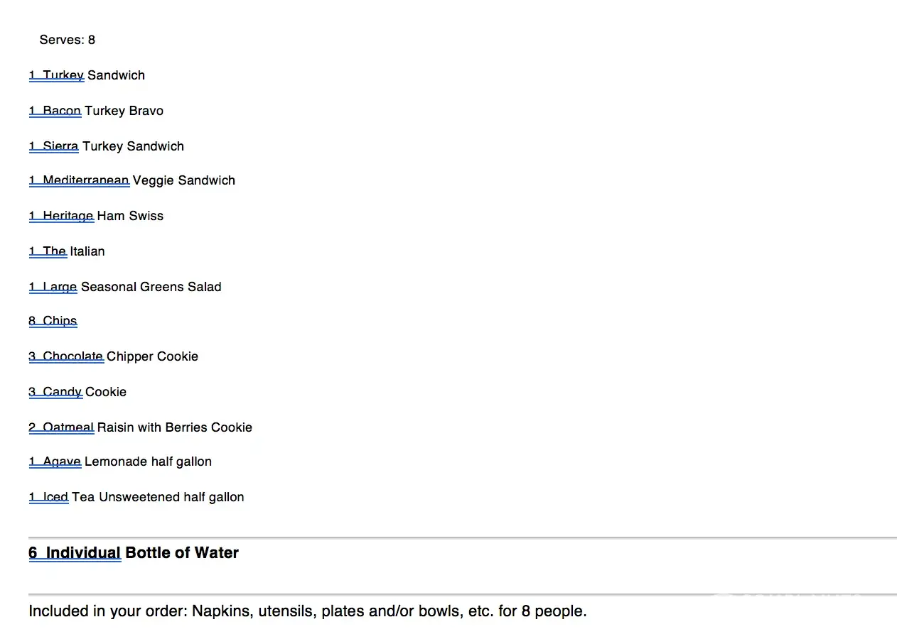 4 - There weren't enough plates and utensils to cover the 8 people I indicated on your order form.