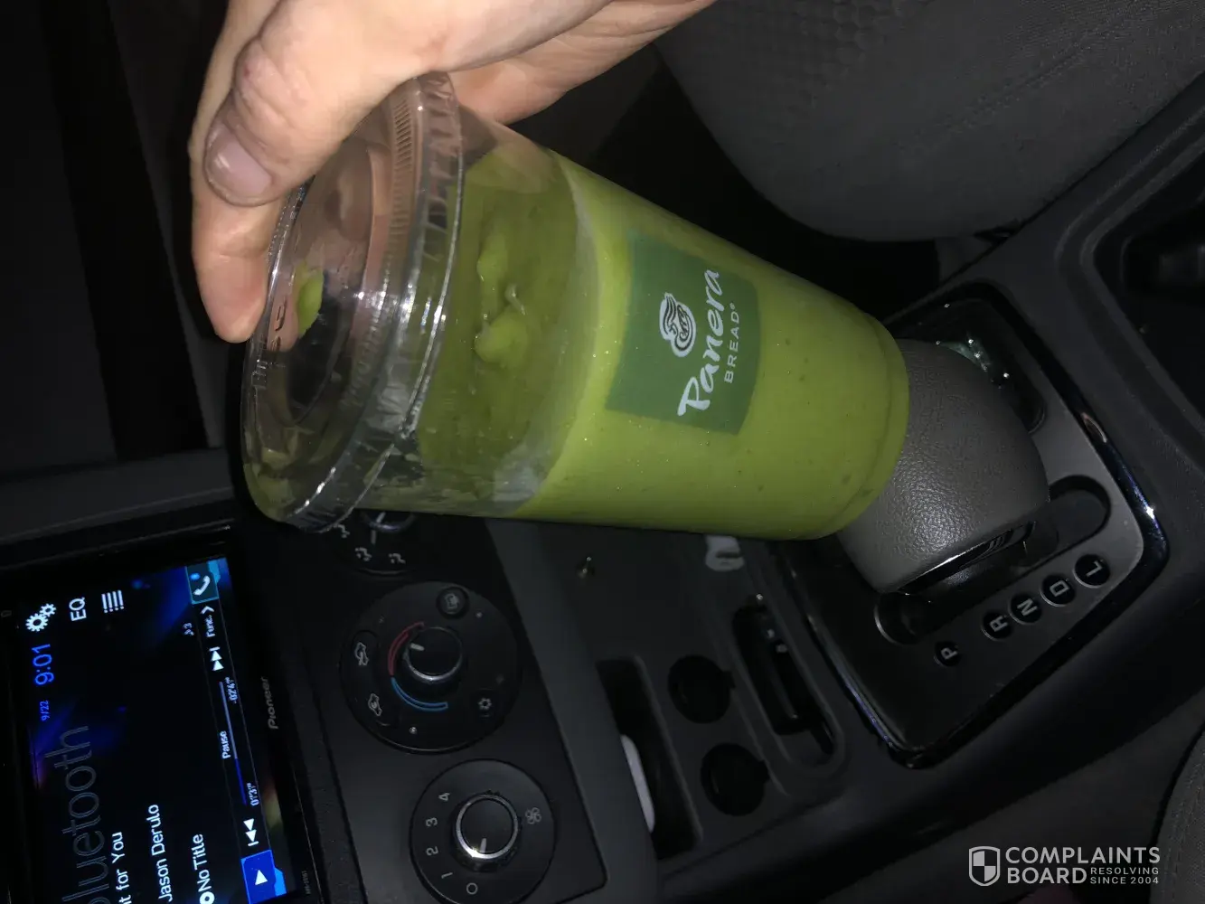 Panera Bread received a half filled cup of smoothie