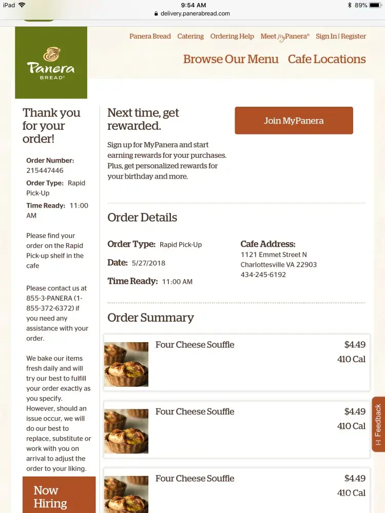 Thank you for hearing my Panera complaint for the 6/5/18 order.
