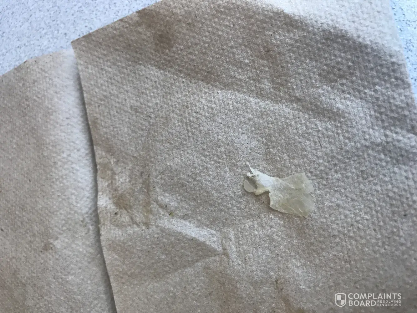 I just purchased the broccoli cheddar soup less than 30 minutes ago... as i was eating the soup something got stuck on my back tooth, which didnt go along w/ the rest of consistency so I then spit it out. It was this thin clear whitish thing... After seriously observing & finding out the ingredients in the soup, this is not a food. Its some kind of FOREIGN object in my food I paid for... Only God knows what this is, I could have had some kind of reaction to whatever this is!