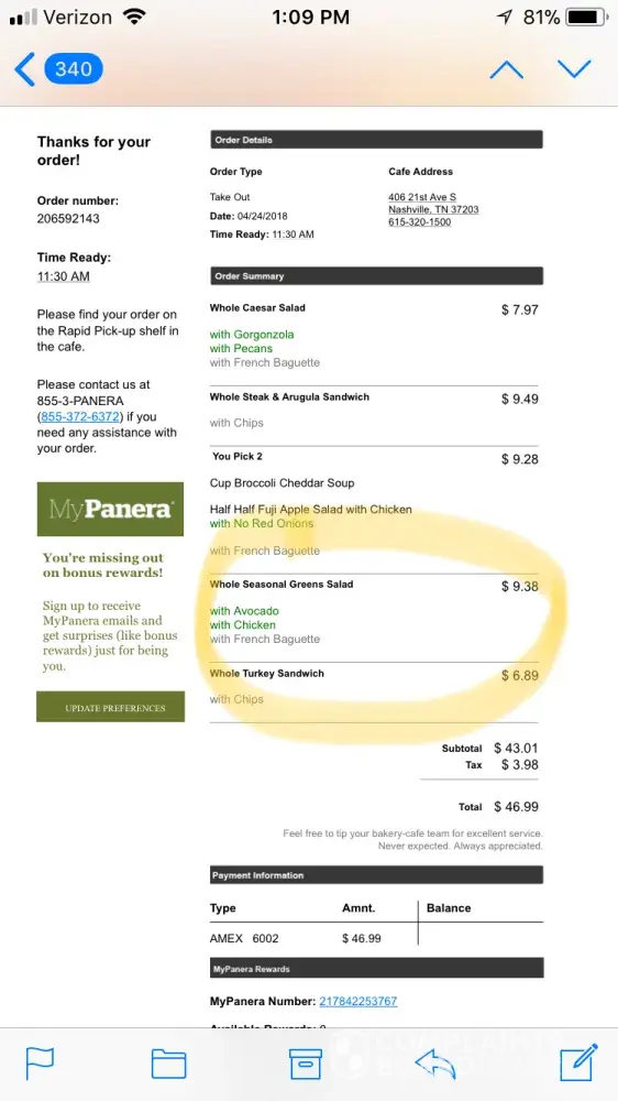 food I ordered at the robertson town center panera