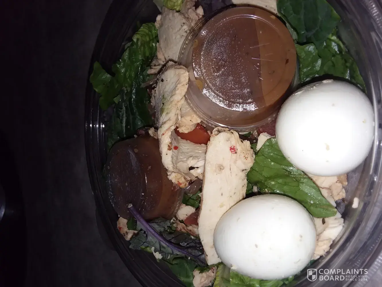 My 2nd time doing this. Not sure it went through. I order this salad 4 times a week. I went into Panera today ordered my salad. Extra eggs and no Avacoda. The gentleman called my name I looked into the bag to check my salad as I do. I noticed the presentation and their wasn't much salad in there. I also noticed that the eggs were thrown other whole and not sliced like they usually are. I could see the traces of Avacoda that was wiped off chicken. I show it to the gentleman who handed me my order. He says I dont see anything wrong with it. I left then went across the street to McDonald's and called the restaurant asked to speak to the manager only to find out that was the manager. He argued the point that their wasn't anything on it. I hung up the phone.