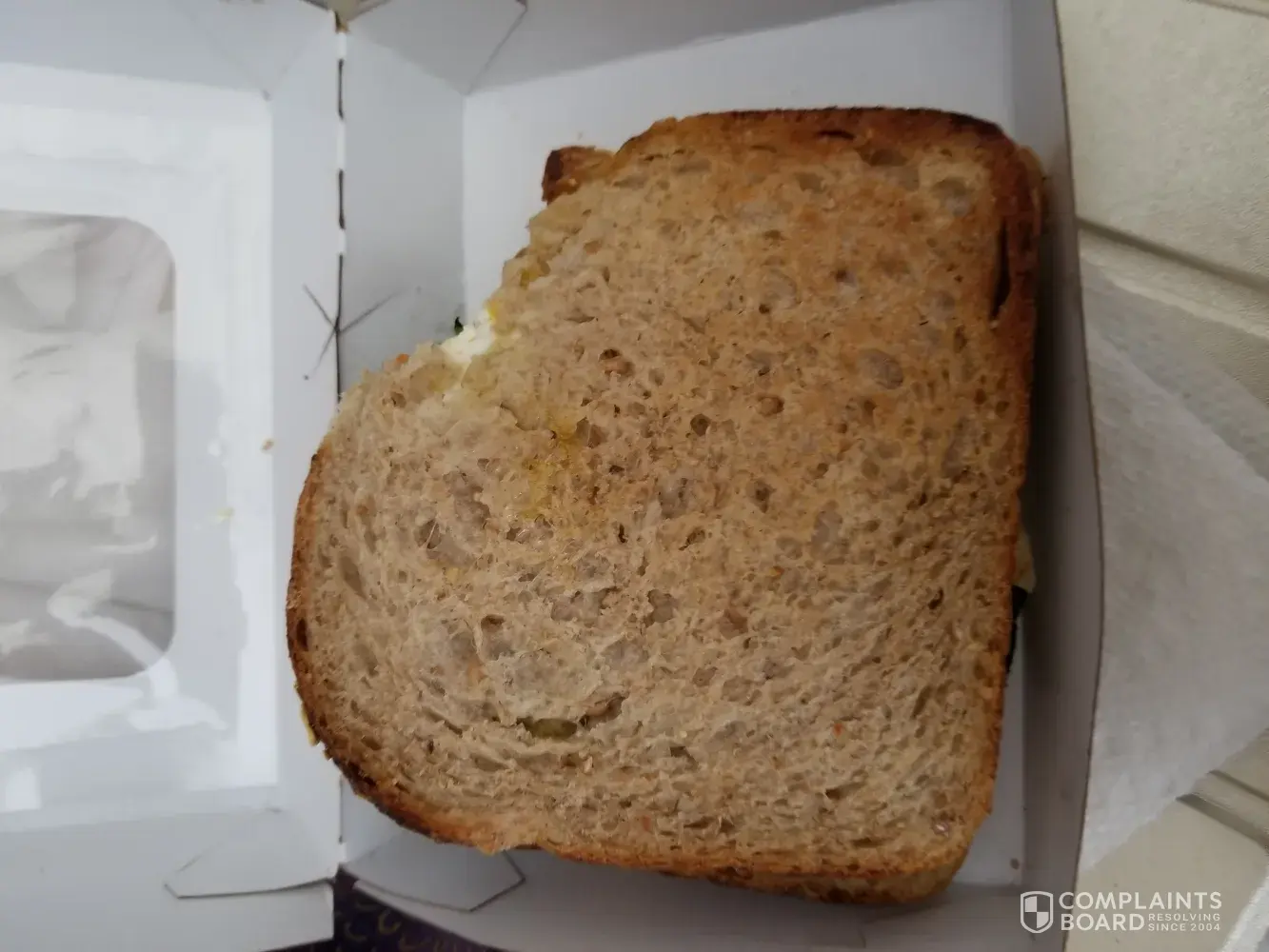 I order this breakfast sandwich all the time. I have never received it like this. I really like Panera. Now I have to check my food before I leave. Disappointed because Panera is not around the corner for me. This is not the quality service that I usually receive from Panera. If they did not have the ingredients, they should've said something. All I have is egg whites, cheese, and spinach. Where are the other ingredients which made me love this sandwich!?! I really hope this doesn't happen again. Fyi, it taste horrible on wheat bread.