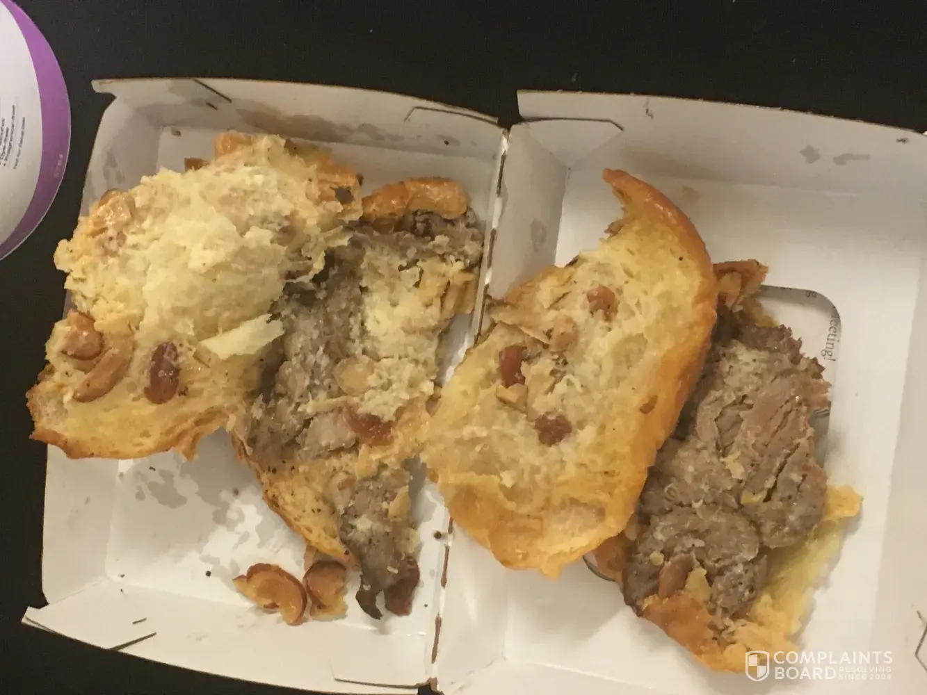So on Friday the 16th I order a pick two I had salad, chai tea and steak & cheese with chipotle mayo. Here is my order number: #[protected].So I had a salad and the chai tea that was good. But when I open my steak & cheese to see almonds were put inside of my steak sandwich I very upset because I couldn't go back because I was on my lunch break I got off at 11:00 pm. I email your support company Alyssa who didn't respond back about the refund that I didn't not received or didn't respond back on rewards she promise me about when I make account with your business. So I called the company and they told me that I may not get my refund, and to make complaint about. I don't like when I make a account with your business Alyssa never respond to nothing I didn't received a reward or I didn't get nothing. I have all the email and pictures.