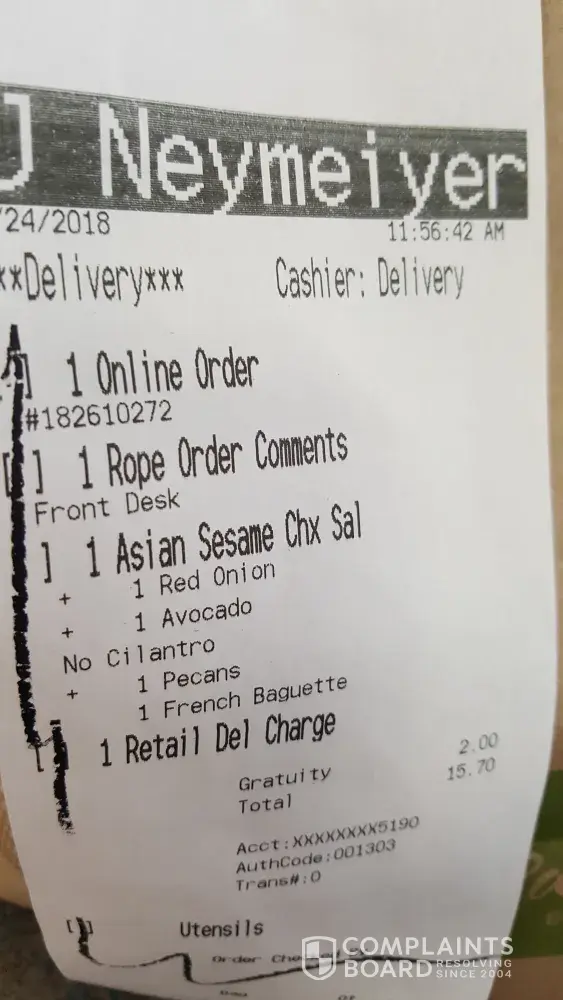 I ordered a whole Asian Sesame Salad with Chicken and added Avacado & pecans and specified NO cilantro. As you can see with the picture below I pulled all the big pieces I could find, but couldn't eat anymore due to the fact it had a lot of little pieces left, and I'm one of the rare people that taste soap when eating cilantro, and could not take it anymore.