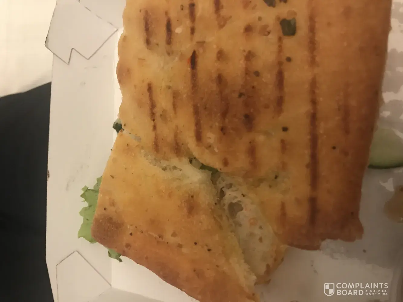 I ordered two Mediterranean veggie sandwiches for rapid pick up around closing time tonight. One without hummus, both with French baguettes. The French baguettes were hard as a rock. Both sandwiches didn't have hummus on it, and one sandwich was a disaster. The bread broke down the middle on both halves (pic attached). When I opened the sandwich up, there was hardly any veggies in it.