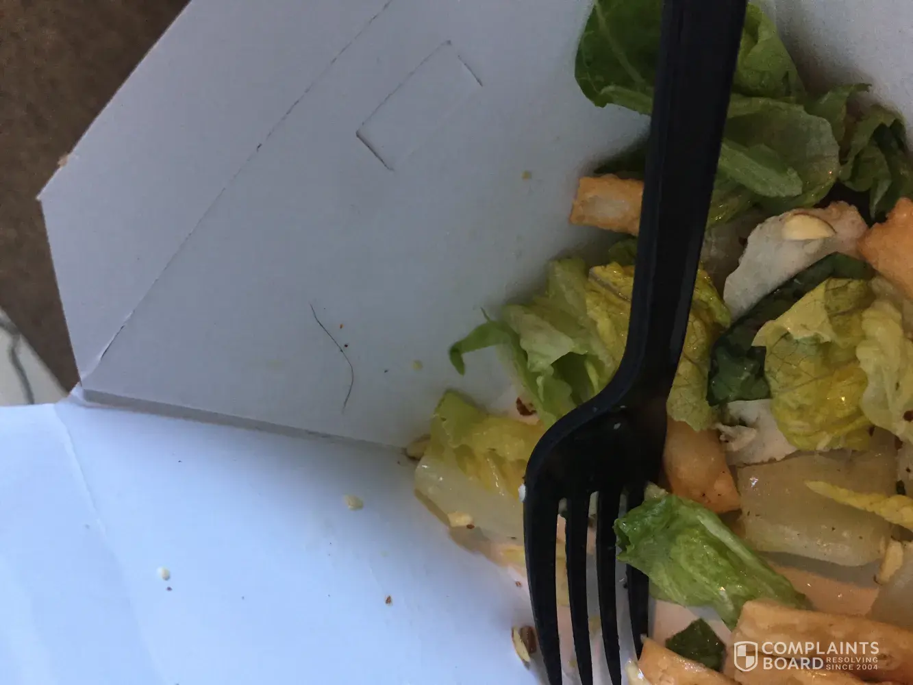 I visited the Panera at the Green St. location in Champaign, Illinois on October 1, 2017. My check number is 417987. I ordered my food to-go. Upon receiving my order, the employees forgot to include my bowl of Chicken Wild Rice soup as well as my side of chips that went with it. When mentioned, I received my soup but no side. When I went home to eat my food, there was a hair in my Asian Sesame with Chicken salad. I am extremely disappointed especially because I tipped the team, expecting great service and a correct order. Now I cannot eat the salad and am missing a part of my order. To resolve this issue, I would like a refund.