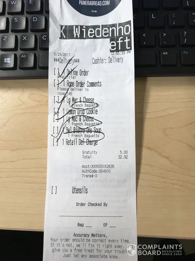 I visit other Paneras all the time so I was shocked at the atrocious state of the restaurant and the overall experience. Our bill was $34.84 and quite honestly I think I should receive a full refund. With all the restaurant choices your company needs to give me a very good me a reason to continue to patronize your establishments because I really do like your food!