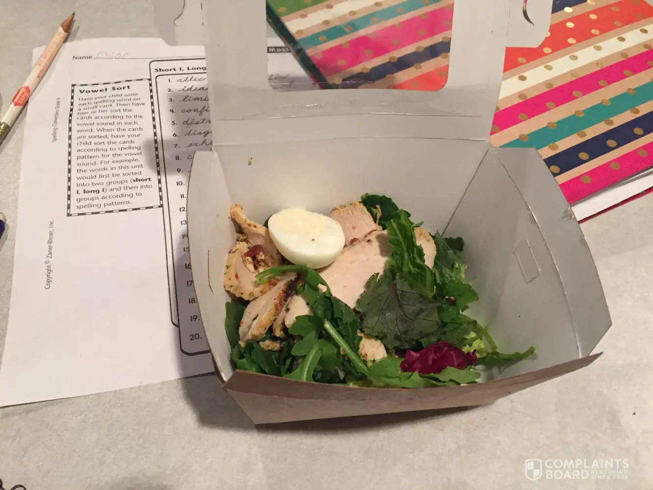 August 30, 6:30 p.m., I ordered in the Taylors, SC on Wade Hampton Blvd restaurant 2 salads. One was 1/2 filled & had spoiled lettuce, and a hard boiled egg. The egg had a white yolk & the first bite was crunchy. The other had rotten lettuce at the bottom.